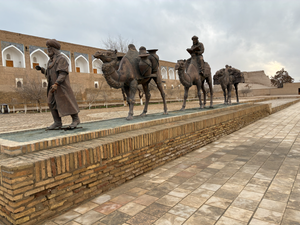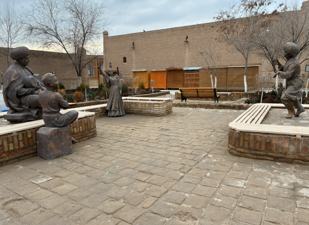 ヒヴァ民俗彫刻広場。シルクロード感がいい。こんな旅商人に会ってみたいですね。