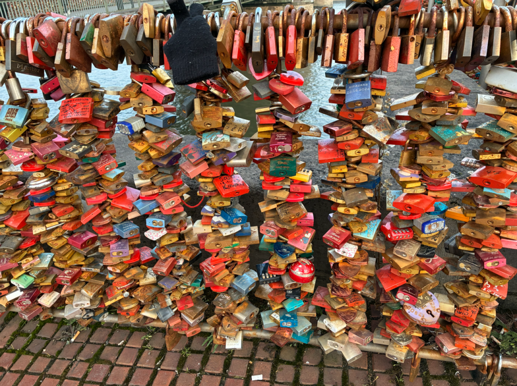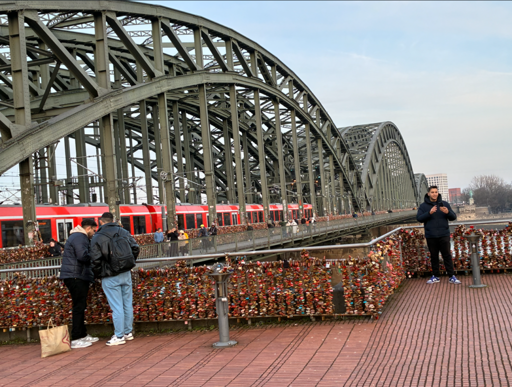 大聖堂を出て、すぐ横のホーエンツォレルン橋へ。手前から橋全体にカラフルに写っているのは、全て南京錠。気持ち悪いほどの数が取り付けられてます(笑)。