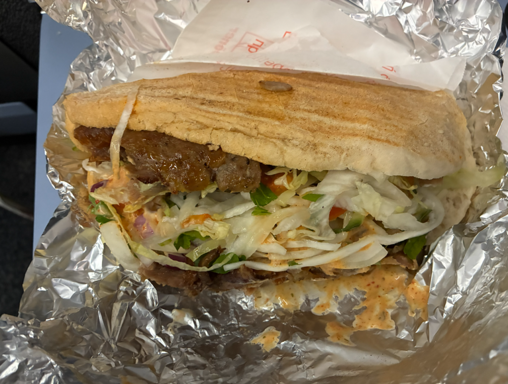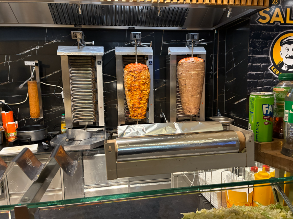 気を取り直して乗り換えのハンブルク駅でケバブ屋を発見。お店の人に全部入れてくれとトマトからキャベツなど全部盛りケバブをゲット。