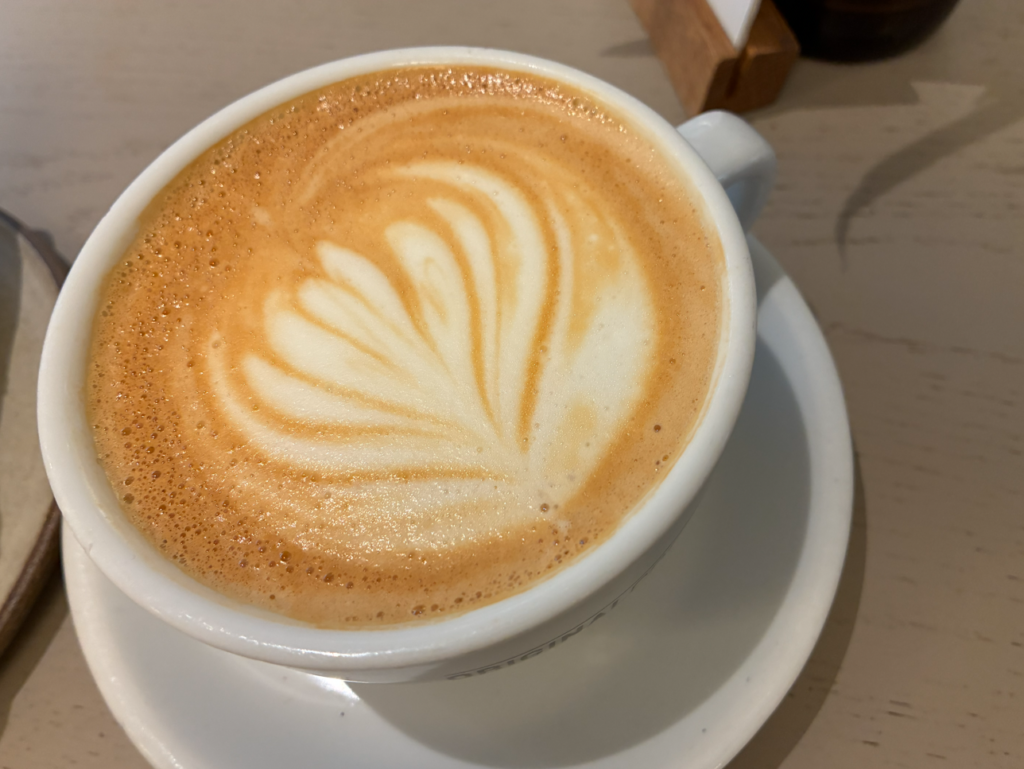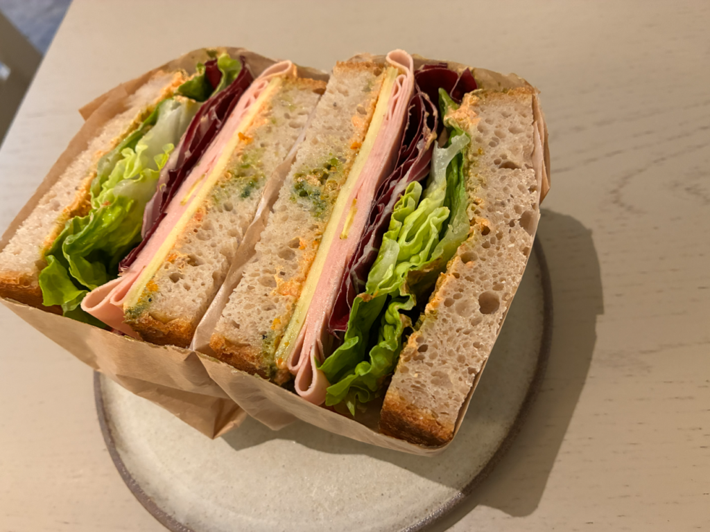長時間のお外で体が冷えたので、ここでカフェ&ランチ。カプチーノ&サンドウィッチ。