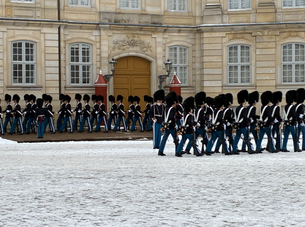 毎日12:00に開催される衛兵交代式(Vagtskifte)を見学しに私を含め多くの観客が集まってます。