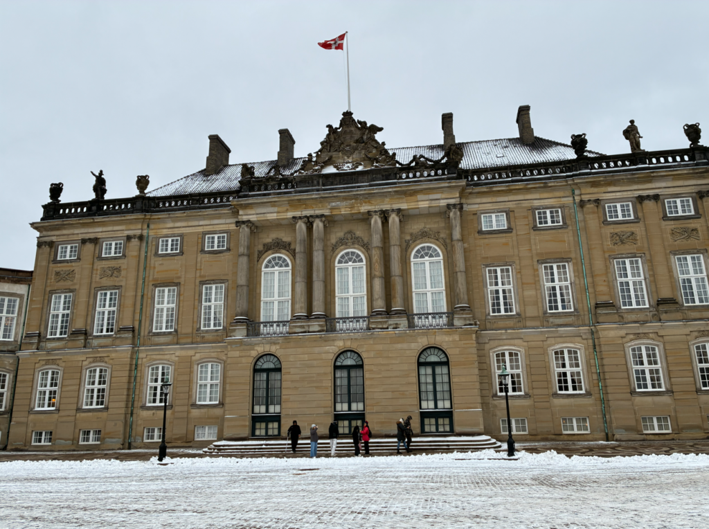 ここで時間が11:30になったので急ぎアマリエンボー宮殿(Amalienborg Slot)へ戻ります。ここは、デンマーク王室の現在の公式居城。