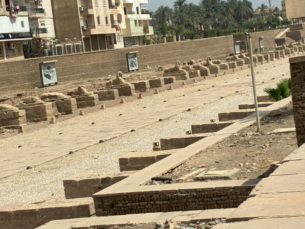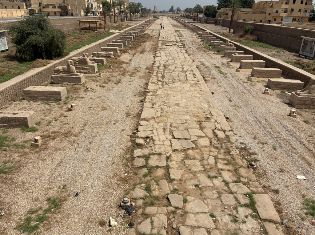 こうして見ると、ほとんどのスフィンクスが破壊されたのか、盗まれたのか残っておらず、台座だけがズラリと並んでいるのが分かります。本来は、この台座すべてにスフィンクスが鎮座していたんでしょうね。想像すると壮観。