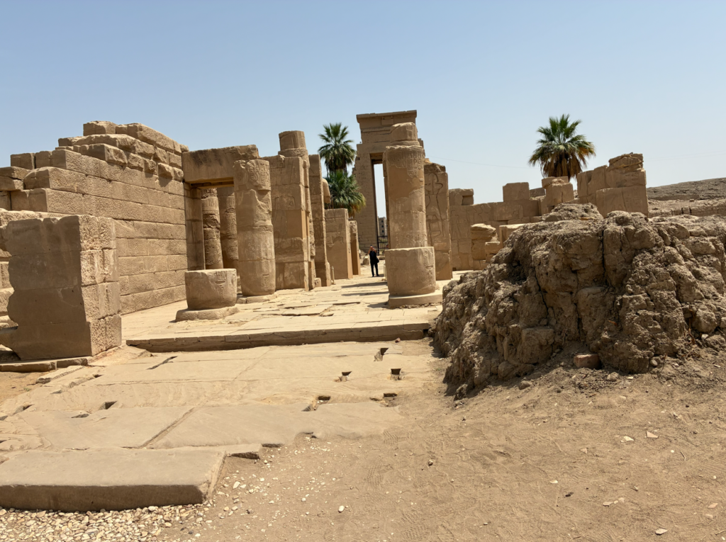 カルナック神殿は、約2000年にわたって歴代のファラオが増築を重ねた巨大宗教施設のため、デカい。ここら辺りは、ラムセス2世神殿跡の模様。