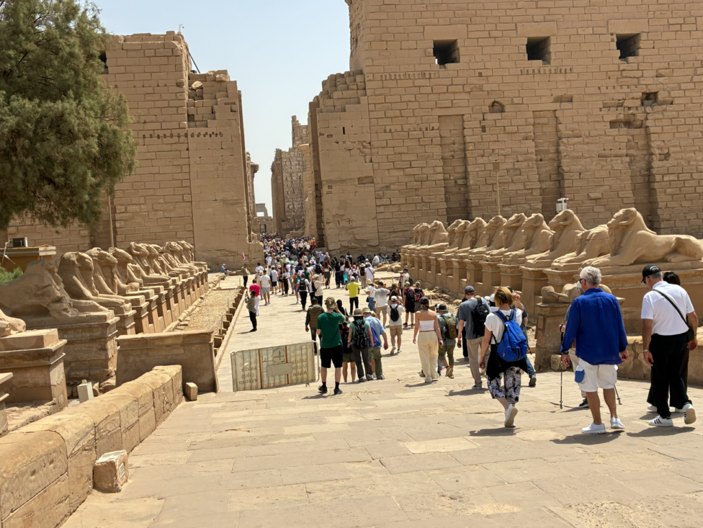 カルナックの神殿エリアに入って最初に目に飛び込んでくるのは、またもやスフィンクス参道。大量のスフィンクスが待ち受けてます。