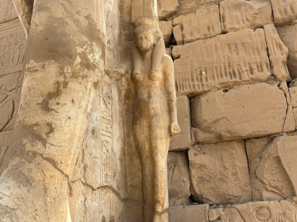 そして、またあるラムセス2世の像。足元にある小さい像が嫁 or 娘で、これに比べて大きい=偉いって言うサイズ表現なんだそうです。考え方が面白い。