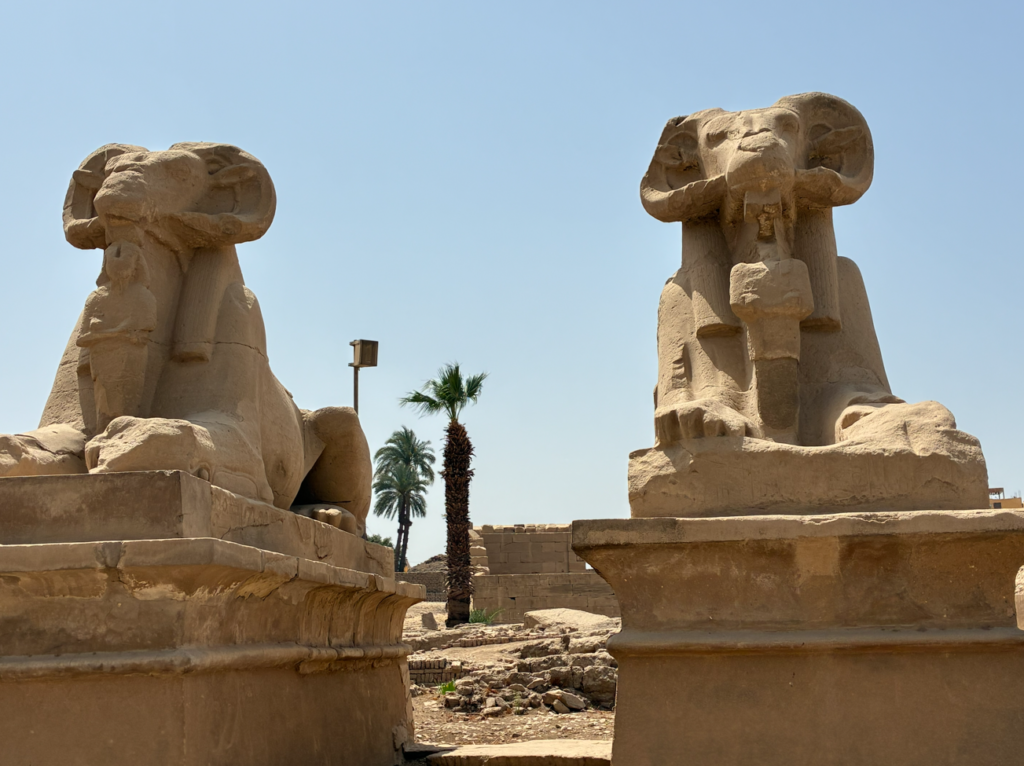 普通のスフィンクスは人の顔ですが、ここは、羊(雄羊)なのが特徴。羊の頭=アメン神の姿。そして、「ここは神の領域だぞ」っていう結界ロードになってるんだそうです。