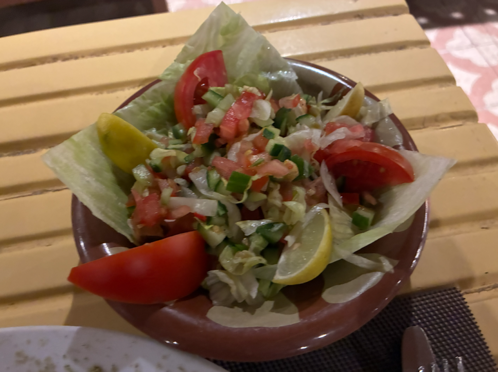 3日連続でAl Sahaby Lane Restaurant。Googleマップ☆4.6。実はこのレストランは宿泊している宿の4階テラスのレストランで一度お部屋に入ると出かけるのが面倒で。。。美味しくてリーズナブルなので、ここばかり利用しちゃいました。エジプシャンサラダ。新鮮で美味い。