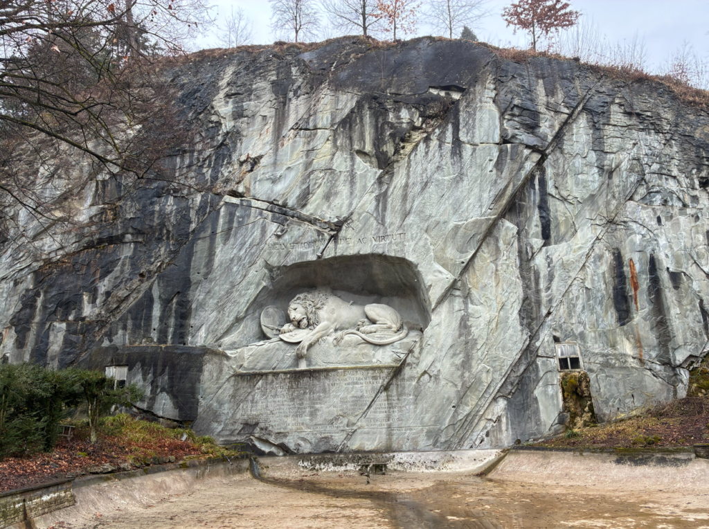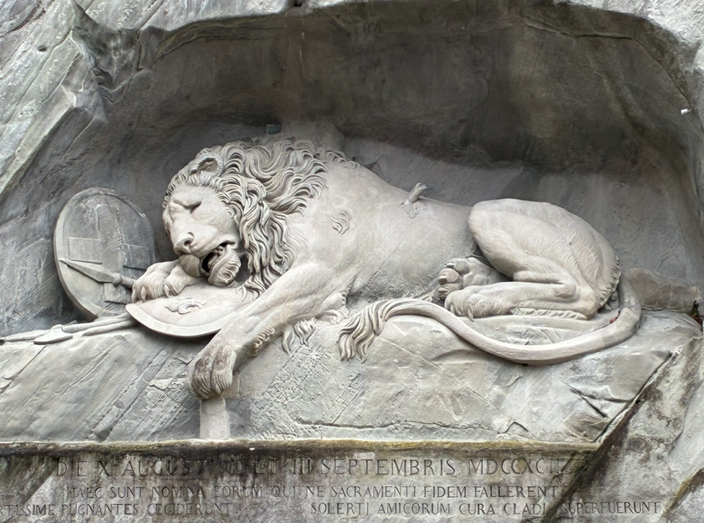 1792年フランス革命「テュイルリー宮殿襲撃事件」で命を落としたフランス王ルイ16世を護衛していたスイス傭兵(近衛兵)を追悼する像。忠誠心の象徴=スイス人の誇りの象徴なんだそうです。こんなの調べないと分からないよ。。。が、最近は、こういうのを調べるのが楽しい。旅の新しい楽しみ方。
