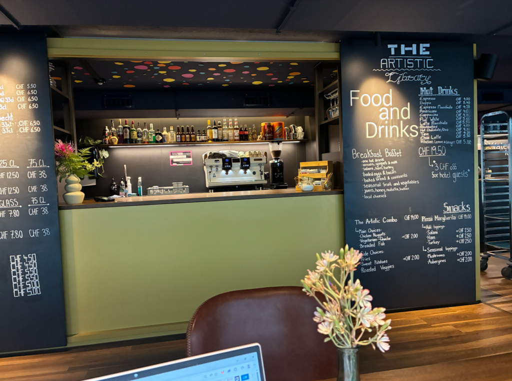 物価の高いスイス。カプセルホテルやドミトリーばかりに宿泊してますが、共有スペースはかなり優秀。WI-FIは高速、お湯もあるので自身でコーヒーを作って飲み放題。レストランは高いので、スーパーで食事を買ってきて、ここで食べます。