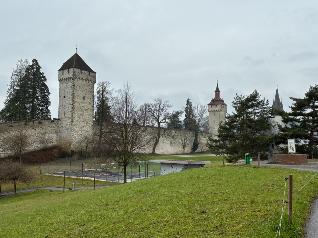 お次は、ムゼック城壁(Musegg Wall)。ルツェルンが「観光都市になる前の、中世の要塞都市だった証拠」。