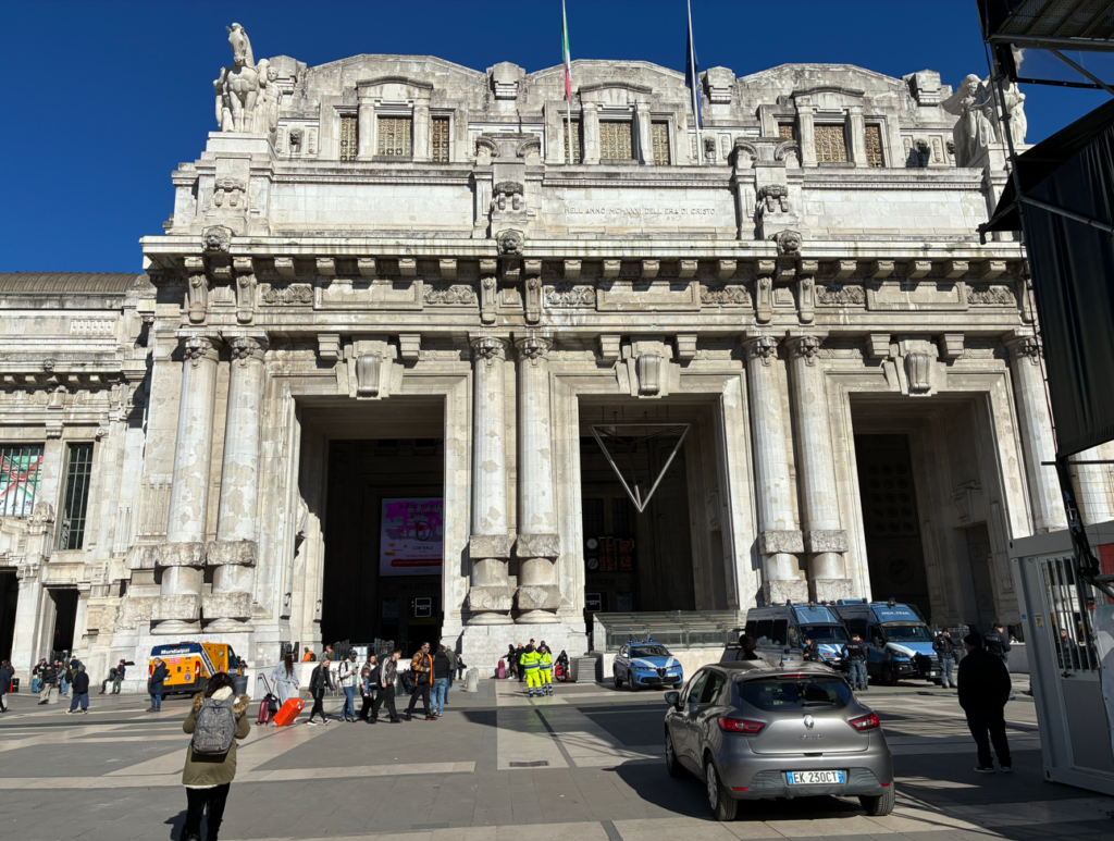 さて、7:54ニース発の列車に乗り、1度乗り換えを挟んで12:59ミラノの中央駅に到着。約5時間の列車旅。シェンゲン内なので出入国の手続きも不要で楽ちん。写真はミラノ中央駅。神殿みたいですね。