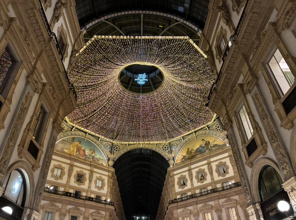 同じくライトアップされたガッレリア・ヴィットーリオ・エマヌエーレ2世(Galleria Vittorio Emanuele II)