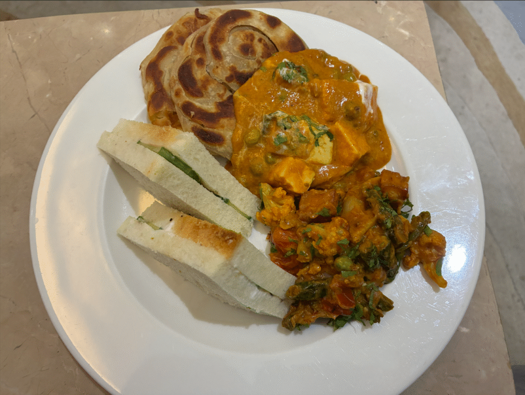 移動は陸路も考えましたがコスパ、タイパを考慮して飛行機をチョイス。まずは、ジャイプル国際空港のラウンジでブランチです。やはりカレーですよね。