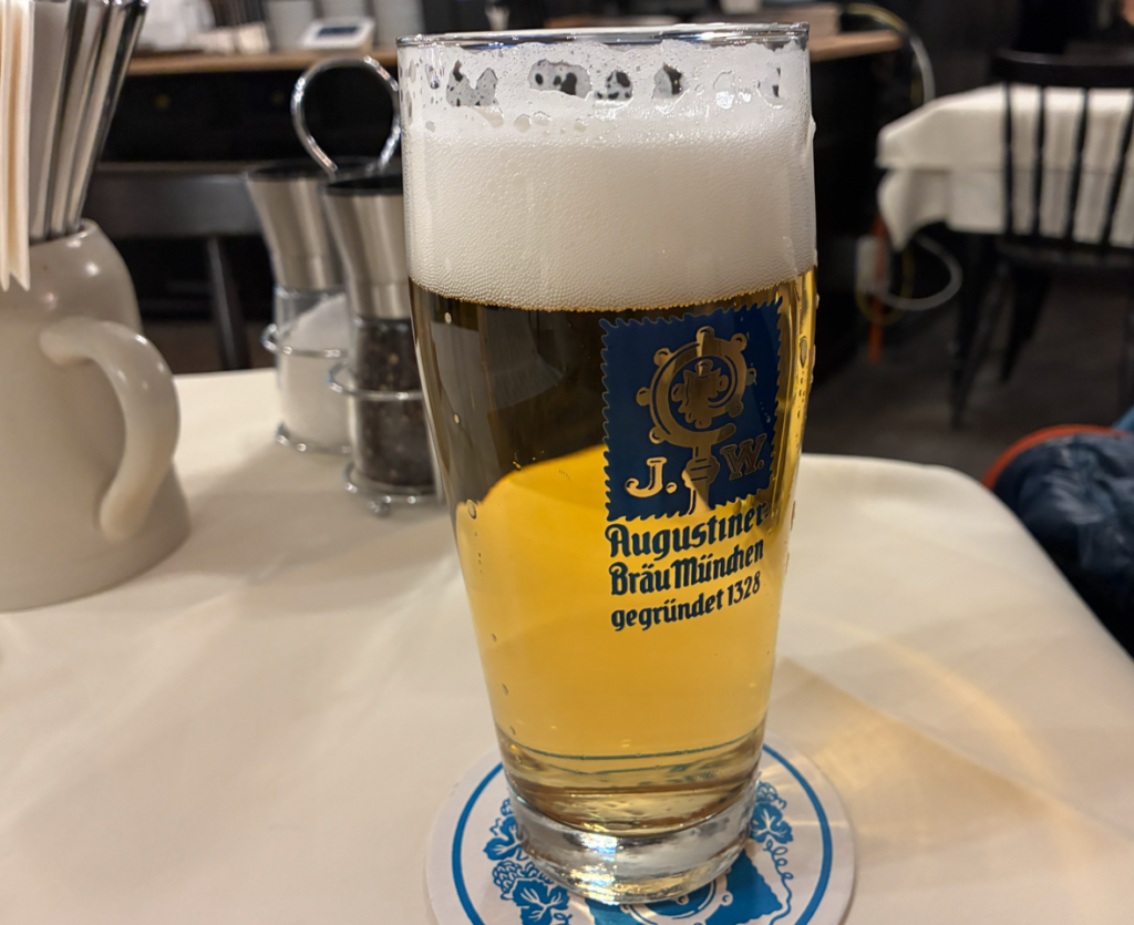 Augustiner Edelstoff(エーデルシュトフ)。食事によく合う1杯。食事のためのビール?ビールのための食事?ドイツ料理は後者の気がします。