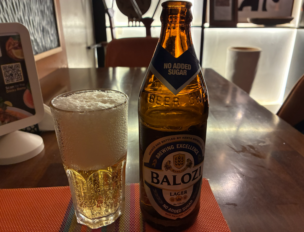 ケニアの代表的なビールの一つBalozi Lager。すっきりした飲み口で苦味は控えめ、暑い気候でもゴクゴクいける軽さが特徴。Tuskerよりも少しマイルドな感じ。
