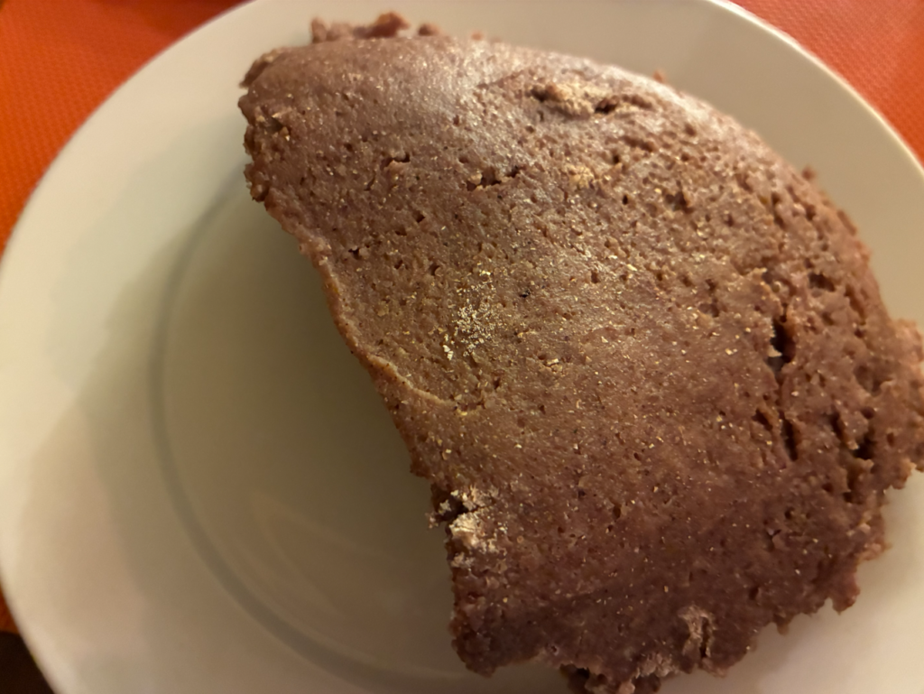 ウガリ。トウモロコシ粉を練って作る東アフリカの主食。味はほぼ無く、もちっとした食感。う~ん、日本人にとってのお米的なポジションらしいが、私的にはイマイチ。味が無いと聞いてたが無さすぎて、ただ、お腹を膨らせるためのアイテムみたい。