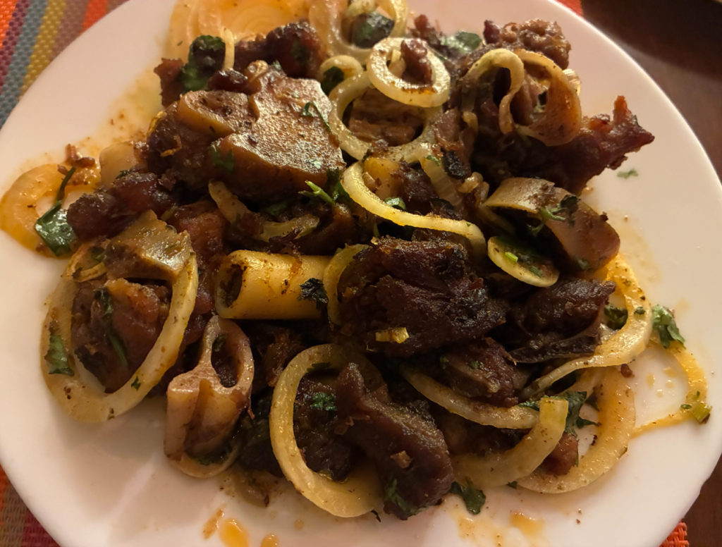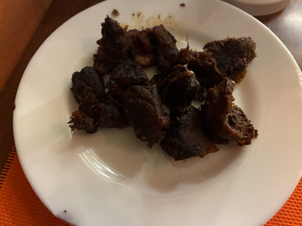 炭火焼きヤギ。外側がしっかり焼かれていて香ばしさ強めのヤギ肉。シンプルな味付けでTHE・肉。ビールとよく合います。