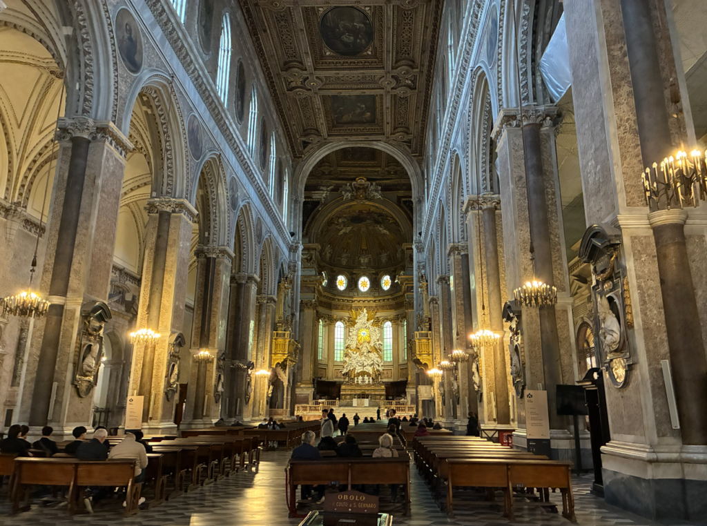 お次はナポリの守護聖人サン・ジェンナーロのナポリ大聖堂(Duomo di Santa Maria Assunta)。正直、ナポリのゴミゴミした街からは明らかに異質で浮いてます。