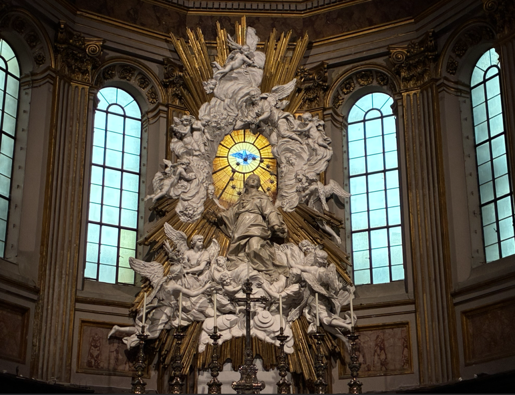 主祭壇はバロック装飾で金と大理石の豪華さが際立っています。
