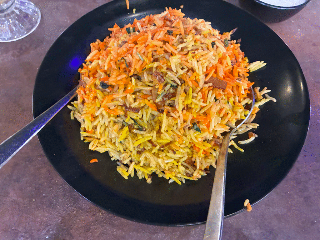 夕食は、Fire & Ice。Googleマップ☆4.8。最近カレーばかり食べてたので久しぶりのチキンビリヤニ&マンゴージュース。ボリューム満点で大満足です。