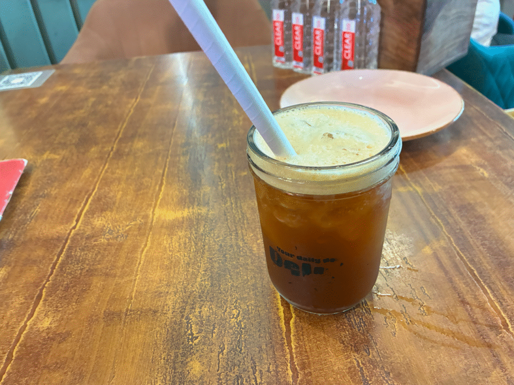 さて、今日も歩数が1万歩オーバーしたのでカフェXero Degreesに入り休憩です。Googleマップ☆4.8。入った瞬間エミネムの曲が大音量で耳に入ってきて即気に入りました。アイスコーヒー&ハンバーガー。
