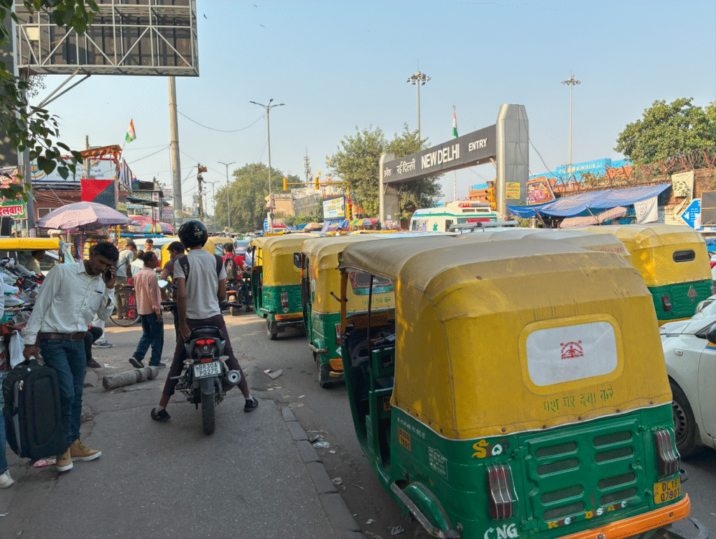 夕方のニューデリー駅周辺の様子。世界屈指の大気汚染エリアだけあり、グチャグチャです。。。どうみてもトゥクトゥクがガンの気がします。
