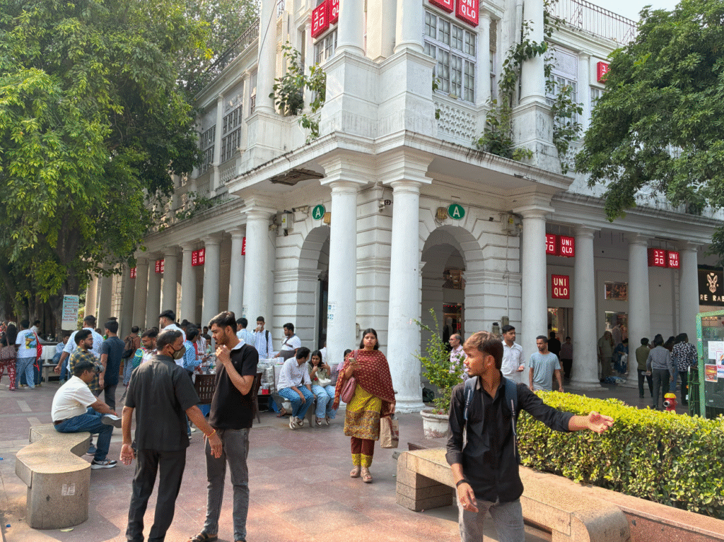 次いで、ニューデリーの中心にある円形のショッピング&ビジネスエリアで、地元の人と旅行者が必ず訪れるランドマーク的スポットのコンノートプレイス(Connaught Place)に移動してユニクロへ。旅を始めてから下着4着、Tシャツ4着を高速回転で使っているので、旅を始めて3か月ほどですが、オール買い替えです。円安進みすぎ。。。たぶん、日本より高い。