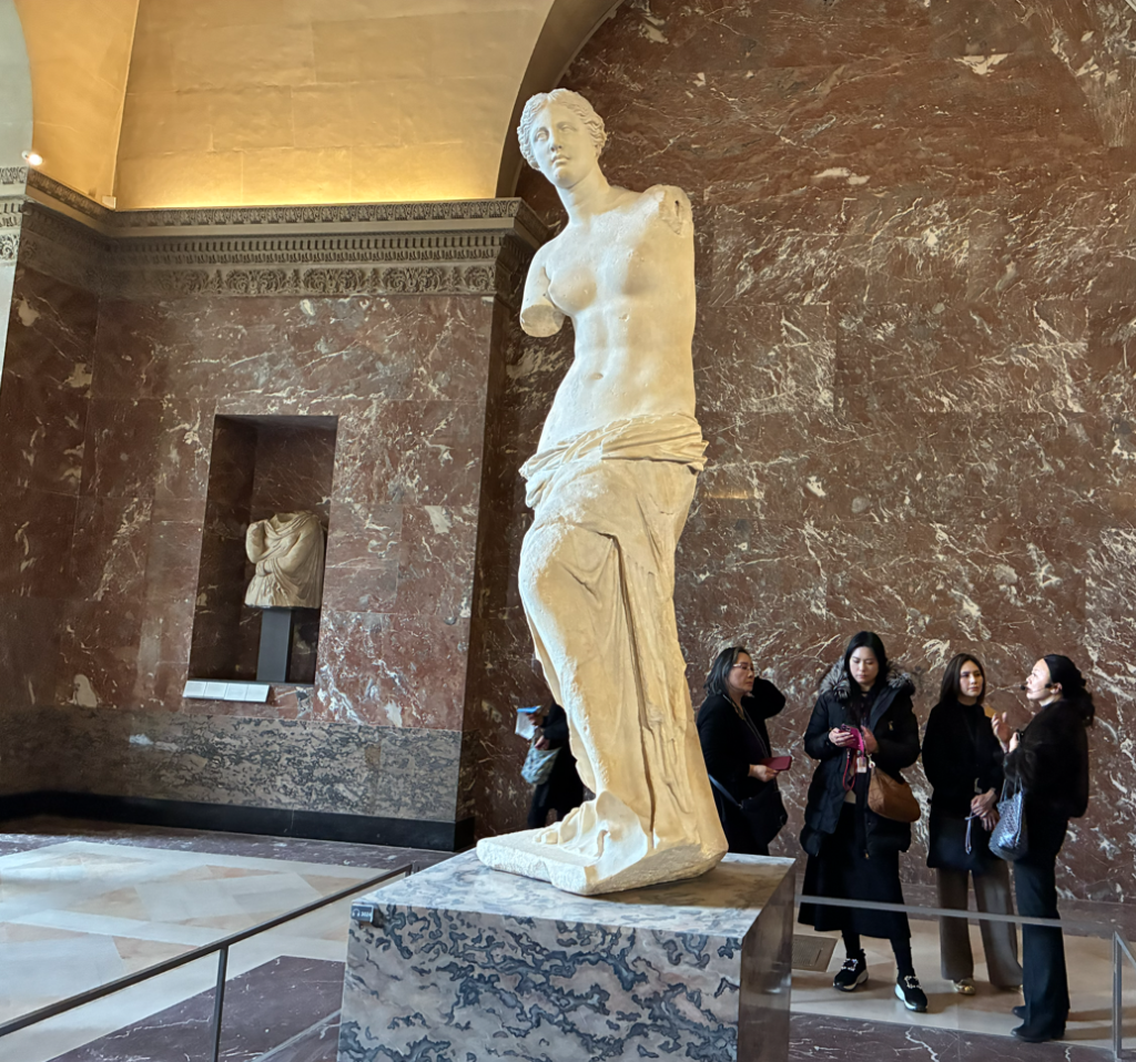 ⑤《ミロのヴィーナス》紀元前130年頃のギリシャ彫刻(ヘレニズム期)、愛と美の女神アフロディーテ。腕が無いのに「理想の人体バランス」と言われる名作。