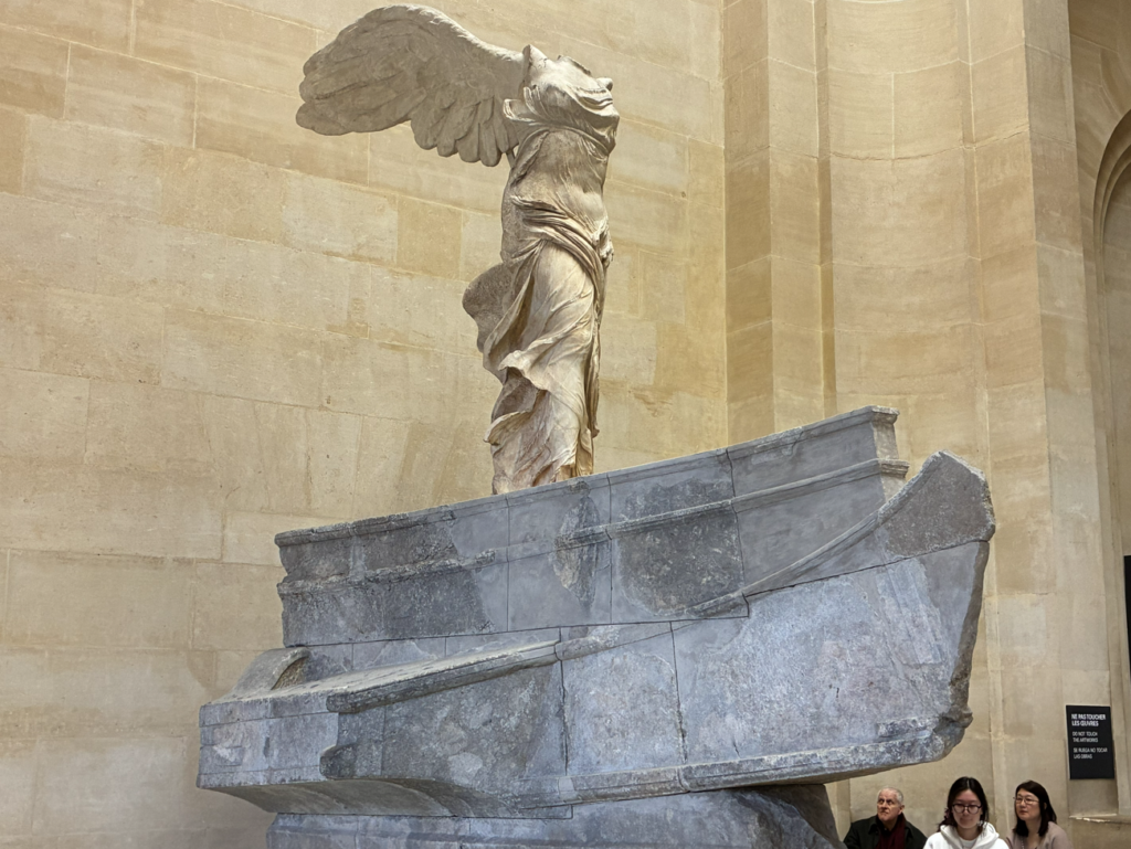①《サモトラケのニケ》紀元前2世紀頃のギリシャ彫刻(ヘレニズム時代)。大階段の頂上。風を受ける布の表現がルーブル屈指の迫力作品。