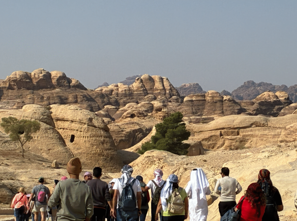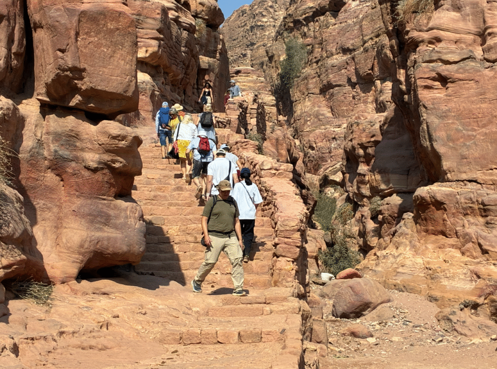 朝7時にホテルを出発し、10時半頃、ペトラ遺跡に到着した感じです。多くの観光客と一緒に入場していきます。