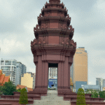 1953年、カンボジアがフランスから独立したことを記念して建設された、アンコール様式の蓮の花をモチーフにした塔。クメール建築を現代風にアレンジしたものです。