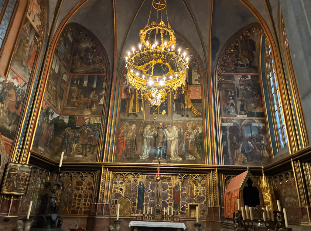 フレスコ画の祭壇空間。歴代のボヘミア王・神聖ローマ皇帝の戴冠式の場だとか。