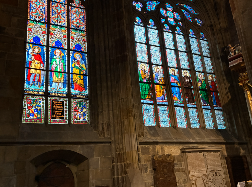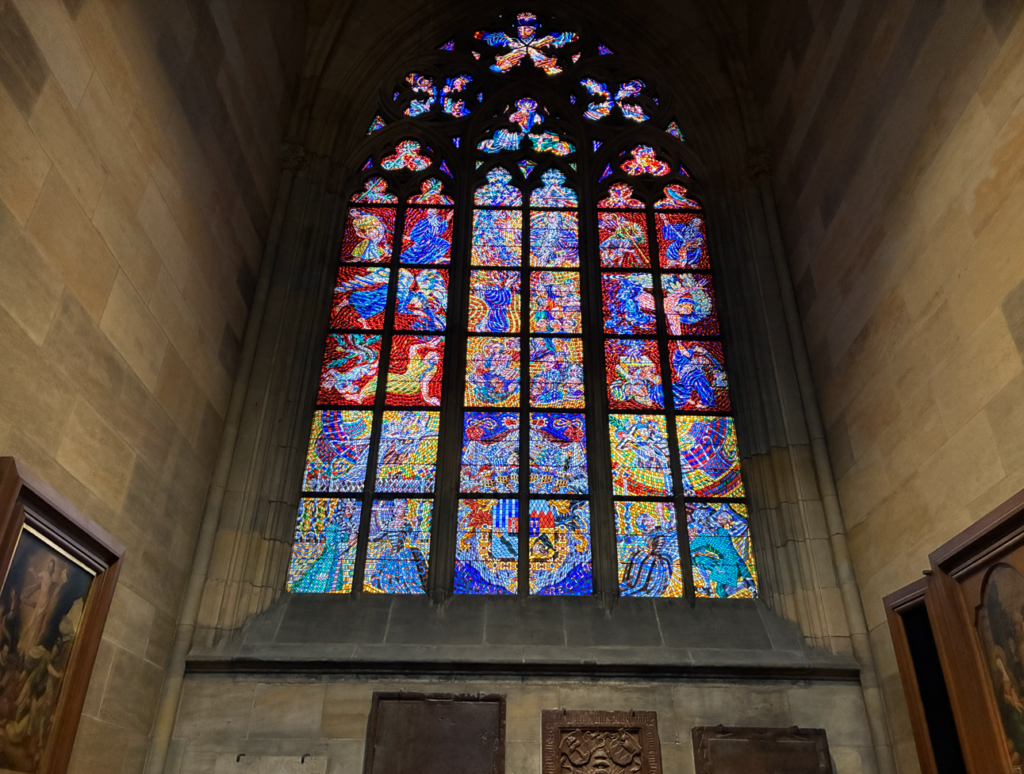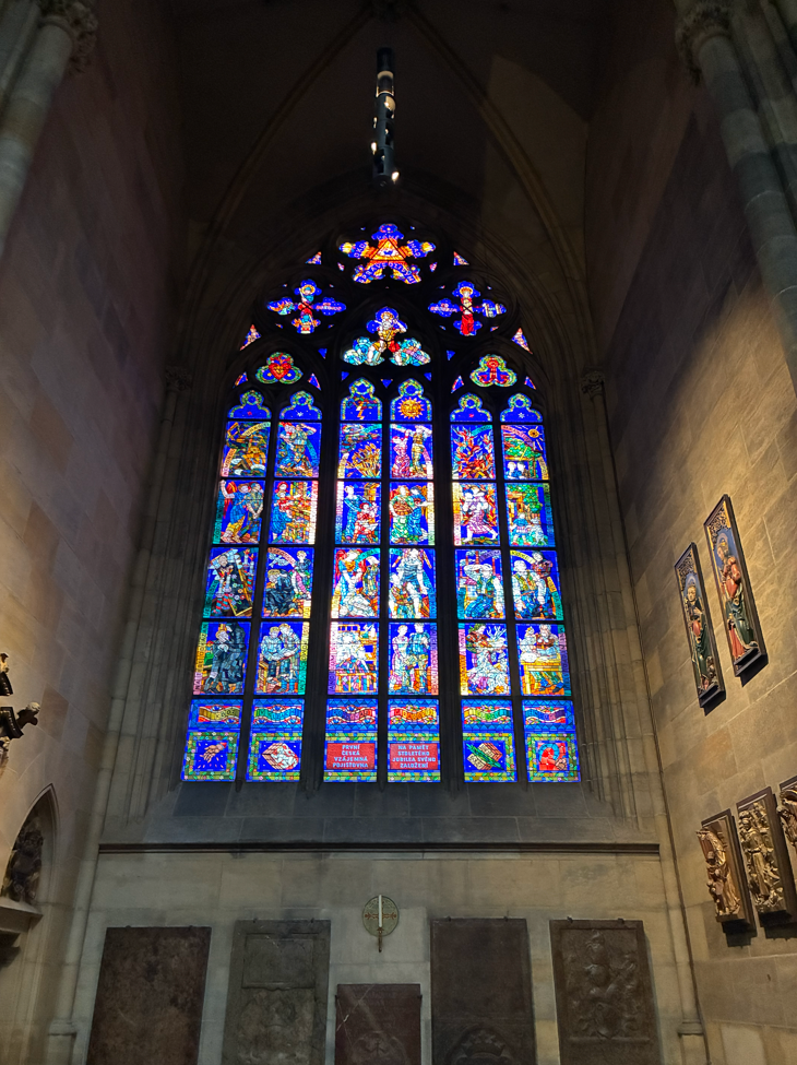 ここは、何と言っても巨大ステンドグラスが凄い。詳しくありませんが、聖人たち+チェコ民族史を色彩豊かに描写されており、素直に美しさに感心します。