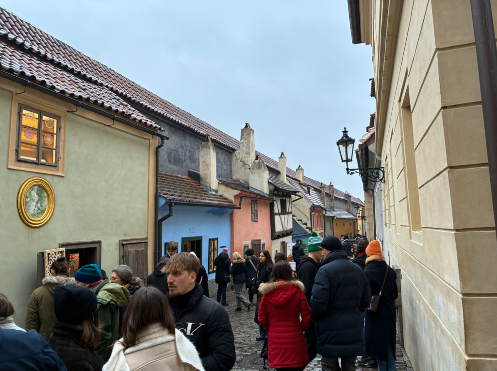 プラハ城の最後は、黄金の小路(Golden Lane)。狭い路地に観光客がいっぱい。
