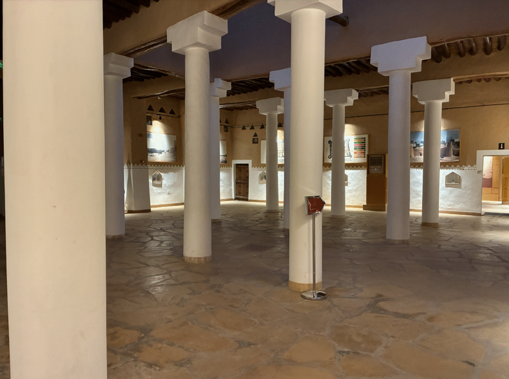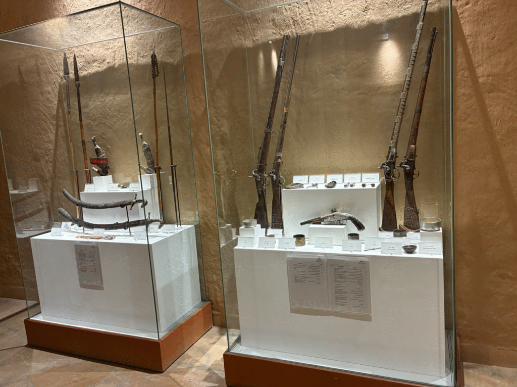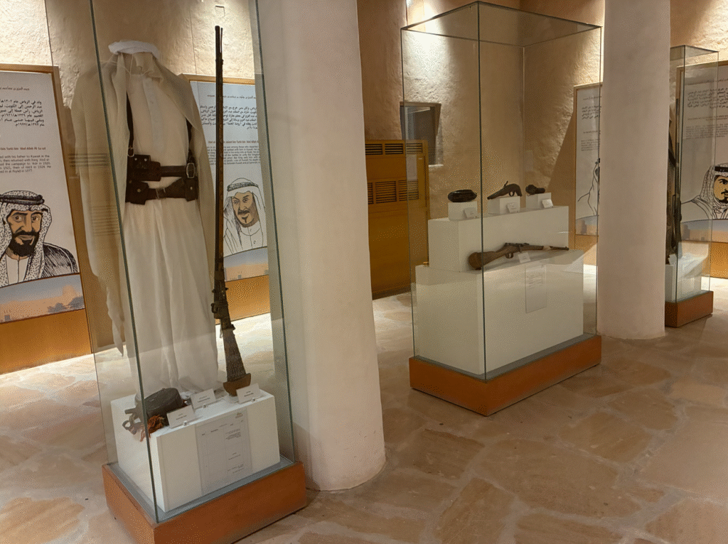 内部は小さな博物館になっていて、902年の戦闘再現ジオラマ、アブドゥルアジーズ王の武器や衣装、古い写真・映像資料などが展示されています。