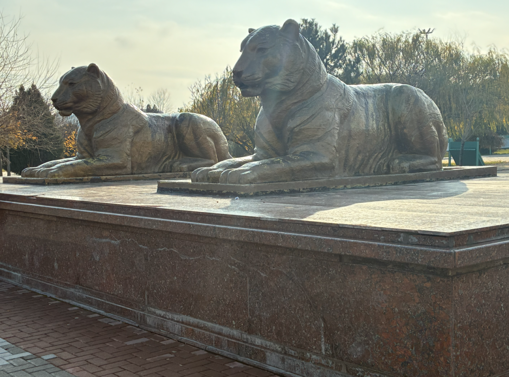 ウズベキスタン4日目。世界遺産サマルカンド観光Day。朝からサマルカンドの街歩きをしていきます。何故かライオンさんが2匹、公園の入り口で待ち構えてました。