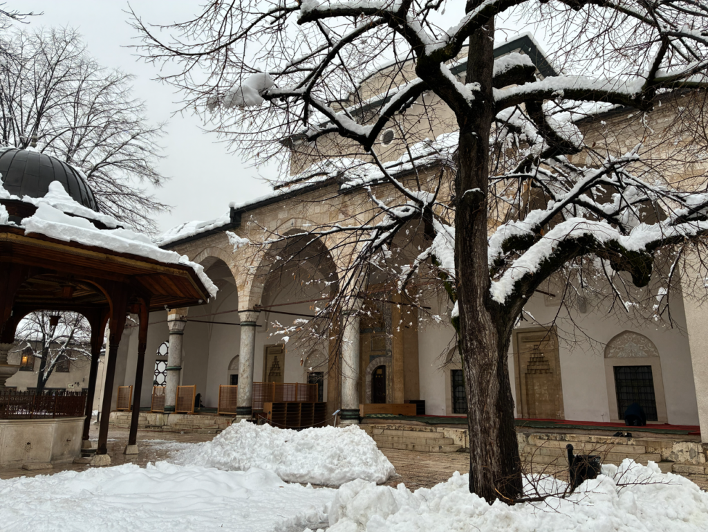 雪景色+正教会+モスク+旧市街は、冬のサラエボでしか撮れない超レアな組み合わせ