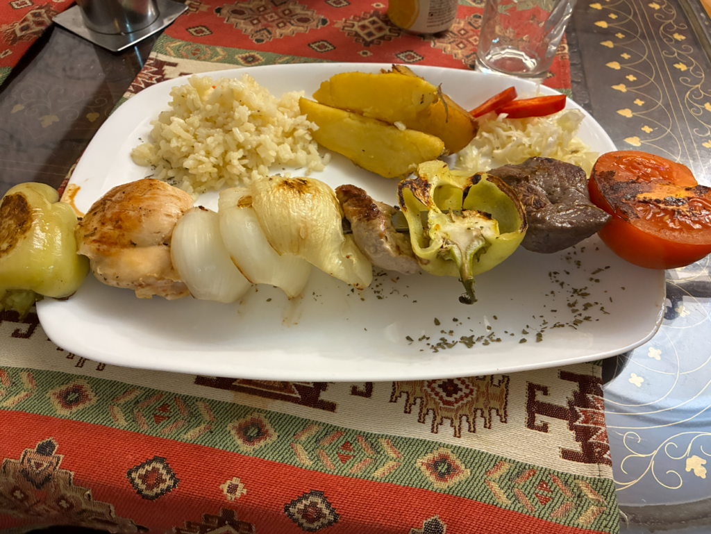 Steak House Bosanska Kuca。Googleマップ☆3.9。ミックスグリルプレート。バルカン風グリルとあったので注文してみました。THE・肉。あと久しぶりにライスを食べました。