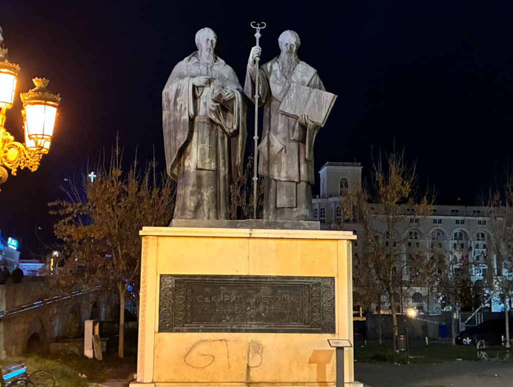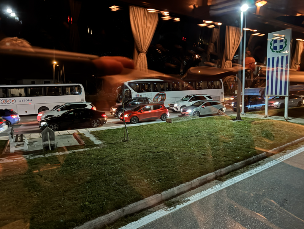 ギリシャ出国手続き&北マケドニア入国手続きは、バスの中でパスポート預けるだけで完結。楽だが待ち時間が長い。スコピエの到着は23時(時差の関係で1時間巻き戻り)。はぁ、明日は朝早いのに。