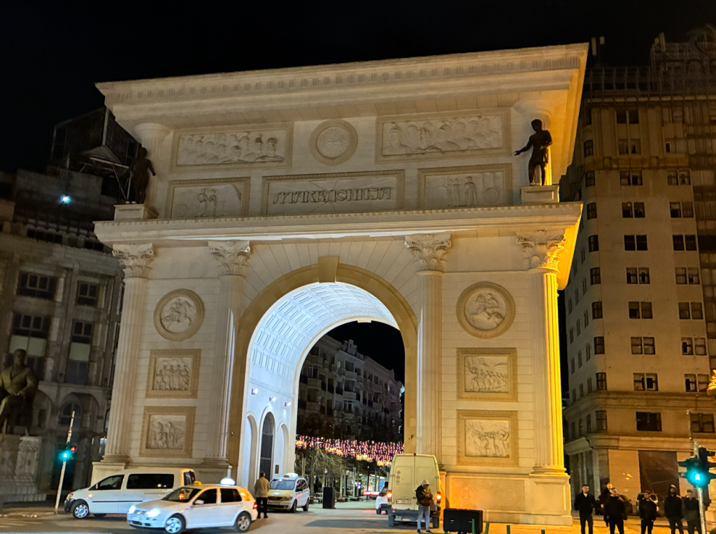 荷物を宿に置き、大急ぎでスコピエの街歩き。まずは、ポルタ・マケドニア(凱旋門)近代的な凱旋門。