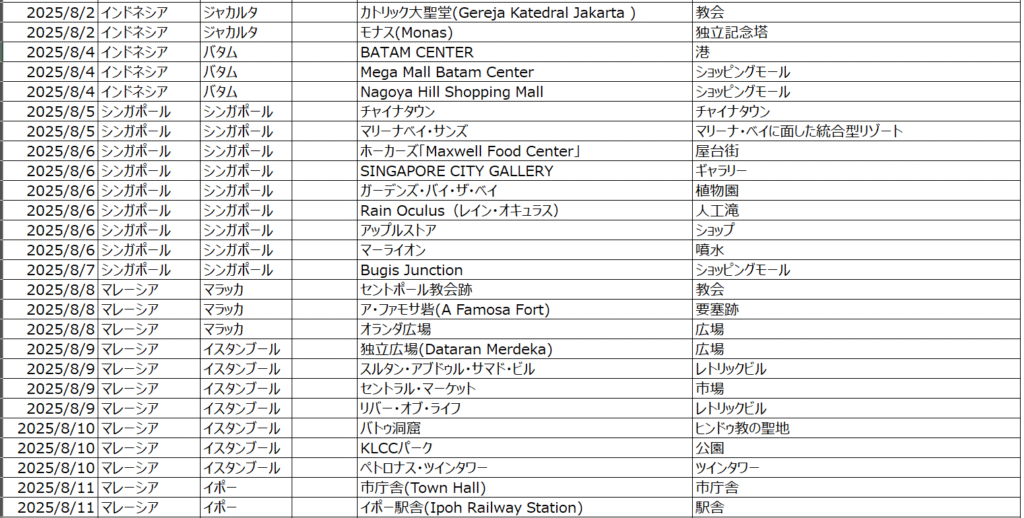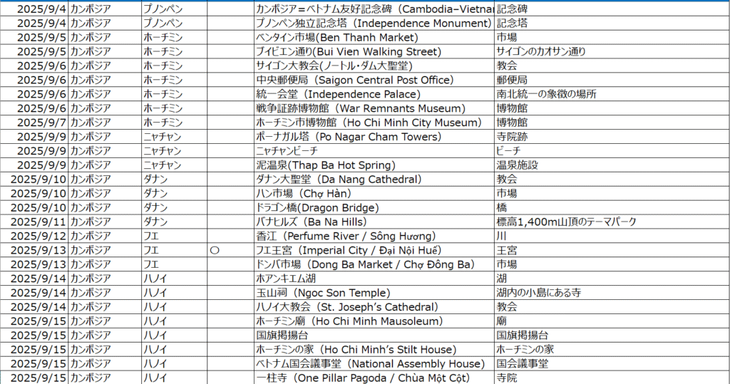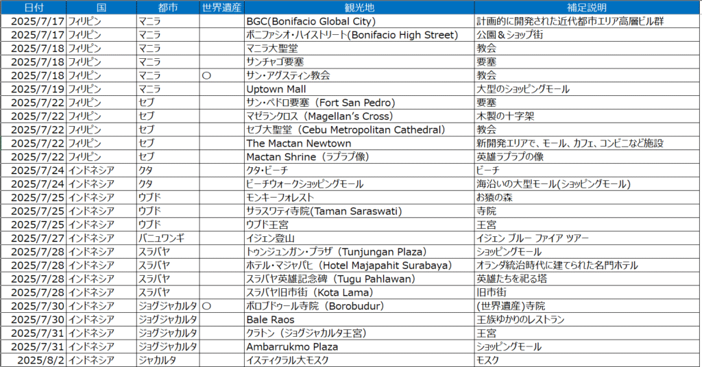 - 訪問した世界遺産(ユネスコ登録のみカウント):18カ所