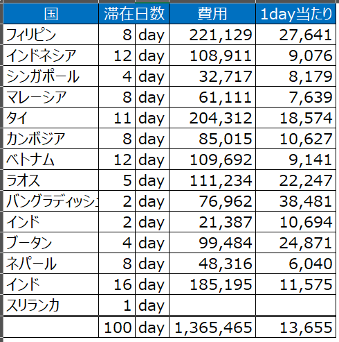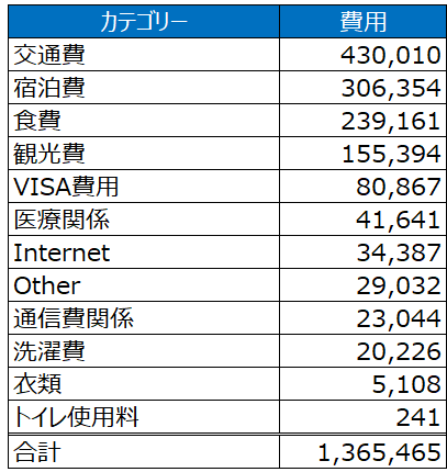 日数と費用を整理したので、海外旅行するときの目安になるといいな。