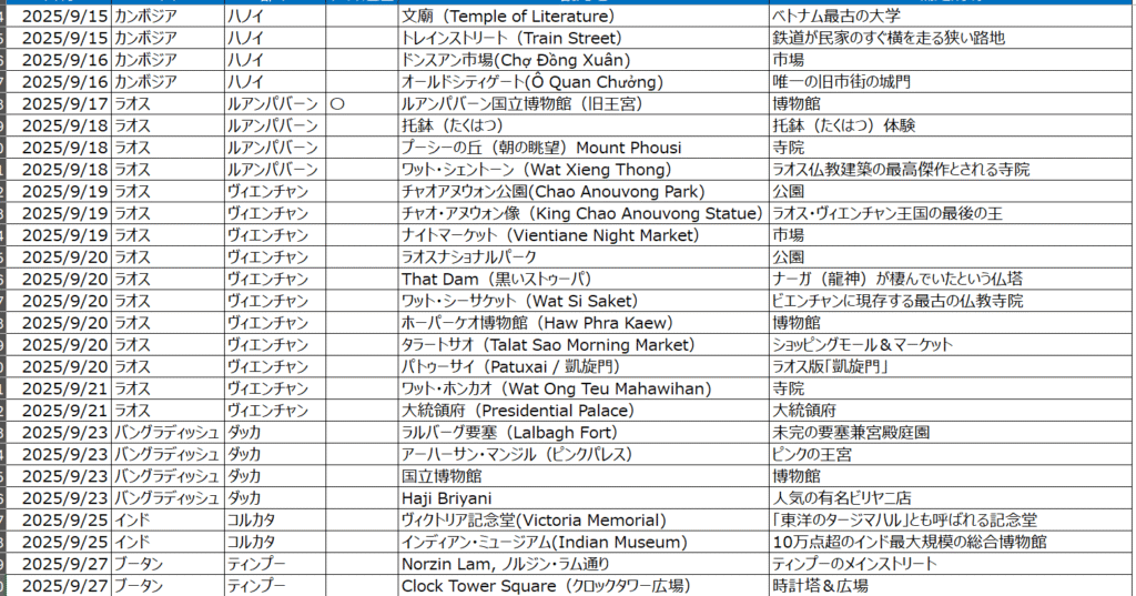 インドはブータン&ネパールのトランジットで入国し、コルカタ観光したため、インド縦断の旅の2つあり。