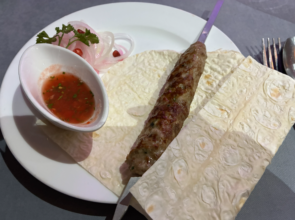 ウズベキスタンスタイル・ケバブ(シャシリク)。中東のケバブと違い、スパイス控えめで、肉そのものの旨味重視な感じ。中東ケバブより好きかも。