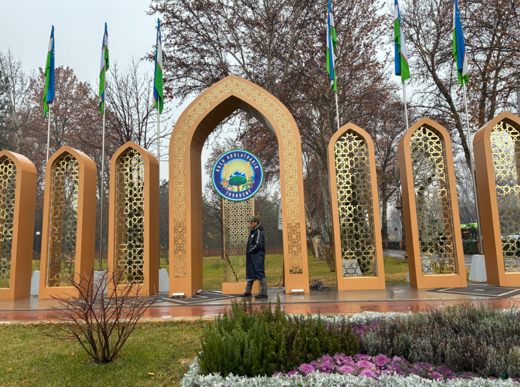 雨なのが残念ですが、周辺には近代的なビルやショッピングモール、高級ホテルも建ち並び、ウズベキスタンが急速に都市開発を進めていることがよく分かる場所です。晴れの日や暖かい日は多くの住民の人達で賑わうのかな。
