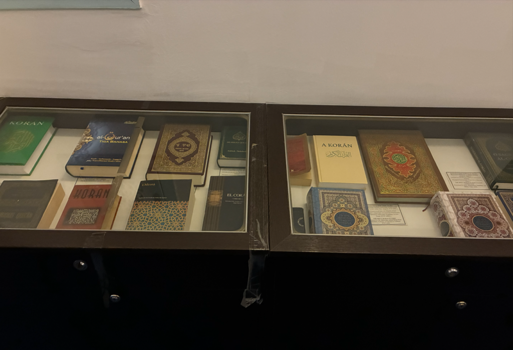 イスラム史において極めて重要な文献の一つ。現在はガラスケースに厳重に保管され、静かな展示空間で公開されています。全く読めませんが。。。