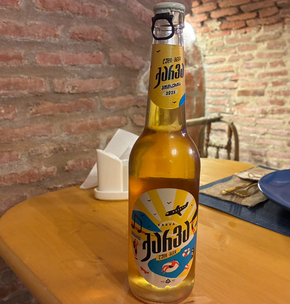 ビール&ジョージアサラダ、ハチャプリもどきのピザっぽいハチャプリ。大満足♪