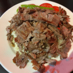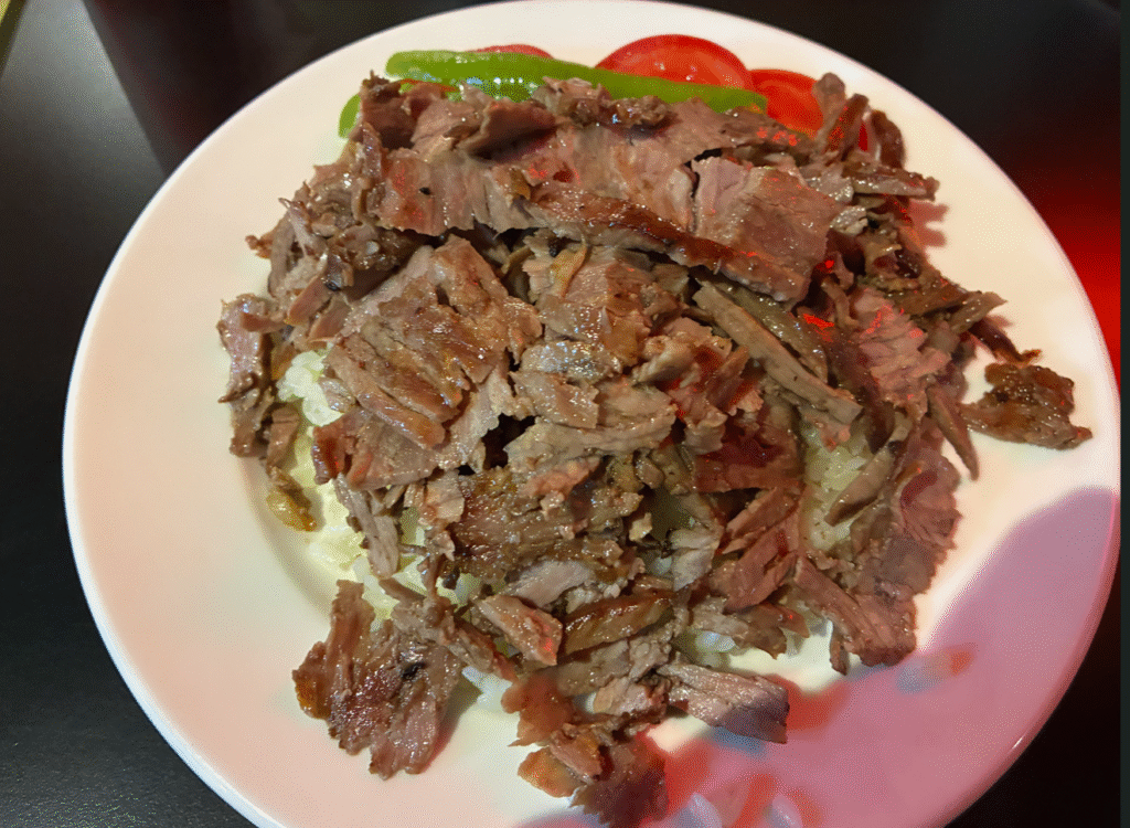トルコ式ドネル・ケバブ(Döner Kebab)。「ドネルケバブ(薄切り肉)+ピラウ(ご飯)+ラヴァシュ(薄いパン)」という、非常に典型的なトルコの定食スタイル。トラブゾンの物価はイスタンブールやカッパドキアに比べると体感半額。安くて美味い。グッド。