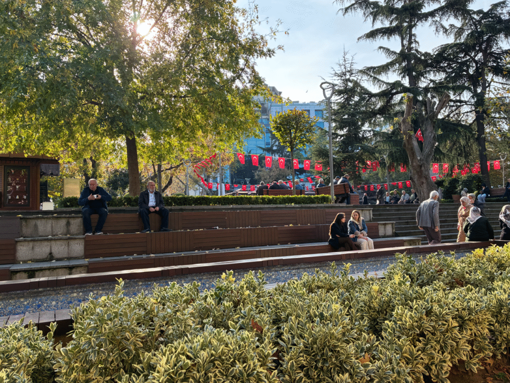 今日もメイダン広場(Meydan)。お昼を過ぎると暖かく、ポカポカなので多くの人達がベンチに腰掛けて会話や陽光を楽しんでいます。